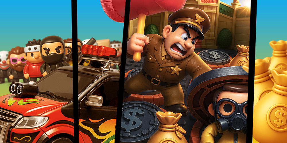 Send the bandits back down the manhole with your frenzy whacking mallet!