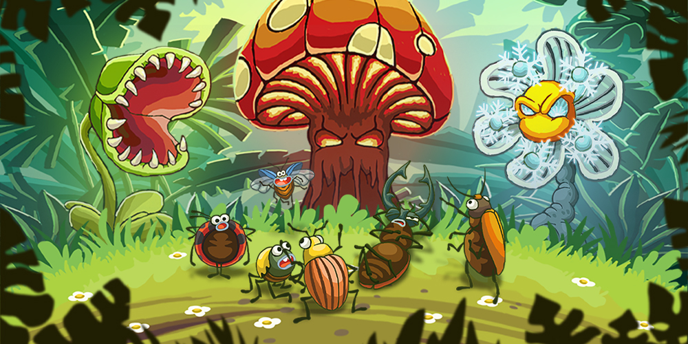 Destroy all the plants on the Bugs’ clearing! Eat flowers, mushrooms and thorny plants to survive in